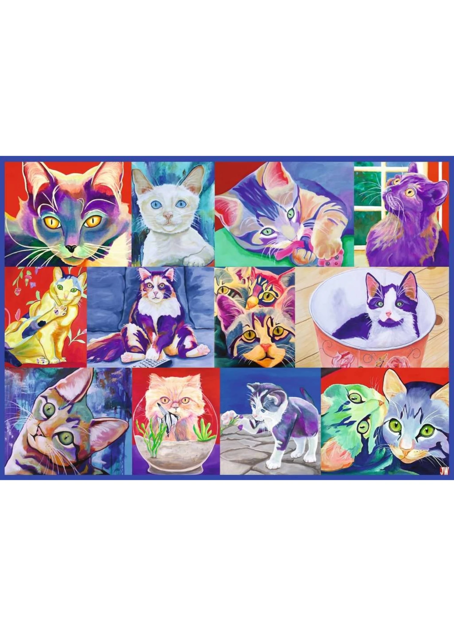 Whether popping up unexpectedly, curling up in a trash can or taking over the TV remote, our feline friends never fail to entertain! If their antics invariably bring a smile to your face, you’re sure to enjoy puzzling this colorful collage of feline faces with arresting eyes. Artist and animal-lover Jodi Wright (who also illustrated our “Hello Doggie” puzzle) has a knack for conveying both cats’ cuteness and cunning minds. So, curl up with your furry friend and enjoy puzzling away the hours!