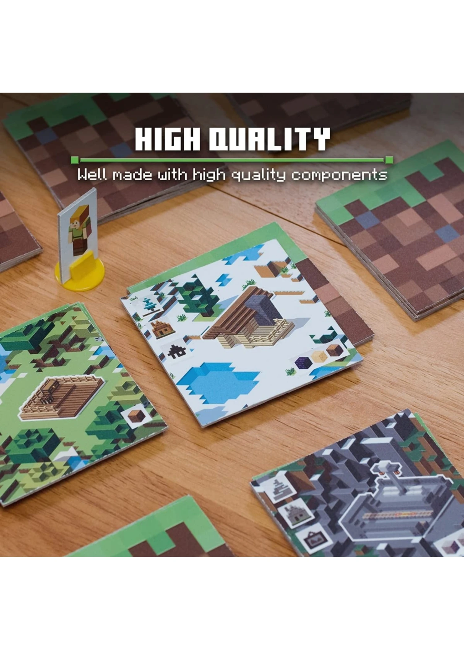 Explore the Overworld, face dangerous mobs, and mine resources to build fantastic structures! The world’s bestselling video game, Minecraft, has been adapted into an easy-to-learn strategy board game Perfect for tabletop gamers and Minecraft fans alike. Each turn, players take two of five possible actions: explore the Overworld, mine resources from a block of resource cubes, build structures, collect weapons, or fight mobs like endermen and Creepers. Build carefully and fight bravely to win!