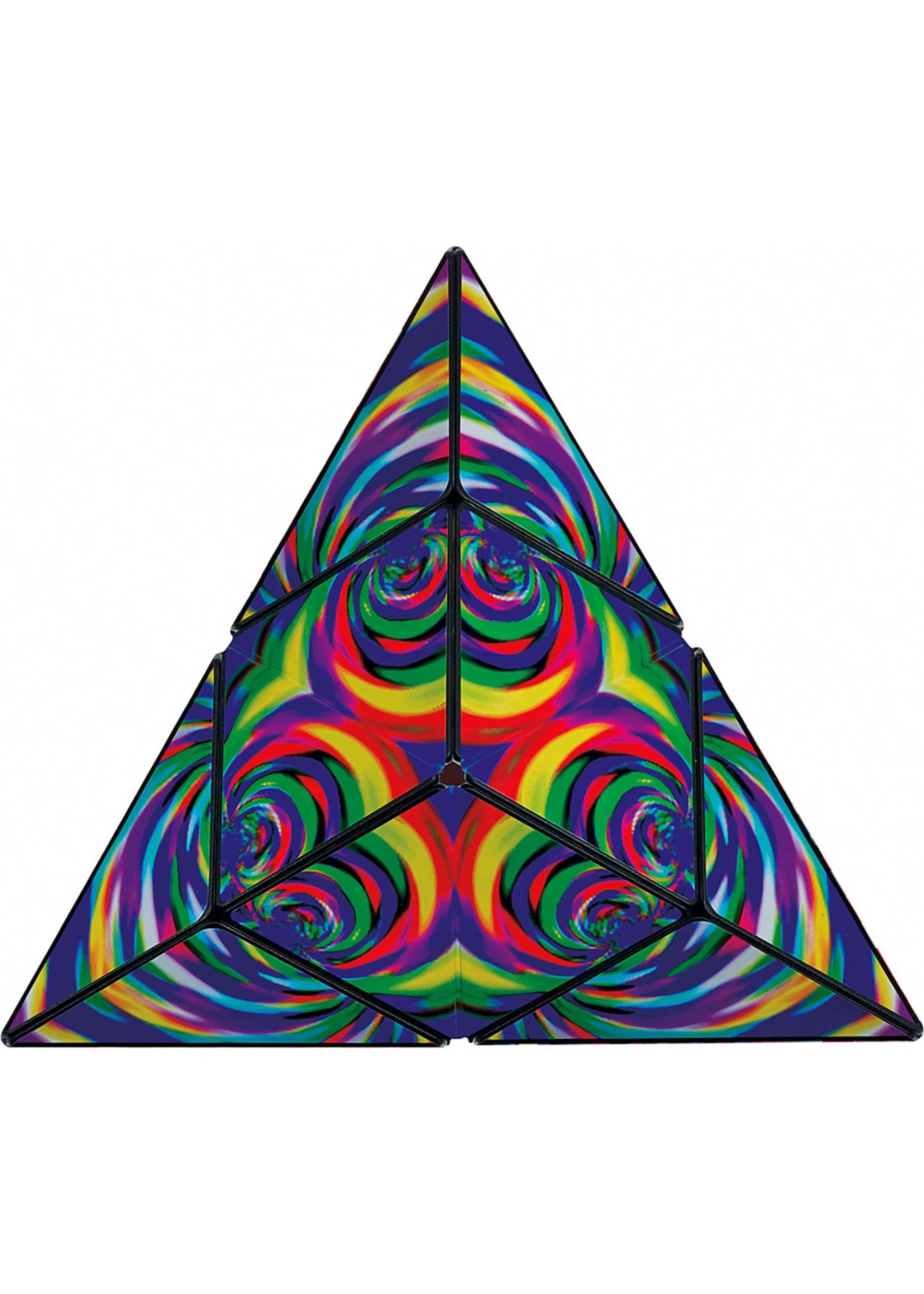 Shashibo is a shape-shifting box that incorporates strong magnets, allowing it to be combined with other Shashibo cubes for making larger sculptures and structures. Folding, captivating, complex, this beautiful magnetic art morphs into 70 different shapes. The Artist Series was designed by American Artist Laurence Gartel, considered a pioneer of digital art. Each Shashibo has 4 art designs – one outer and three inner designs. Confetti is a 2.4″ cube of red, white and purple eye-popping splotches of color. Download the Shashibo Shape Guide and see if you can master this shape-shifting puzzle.