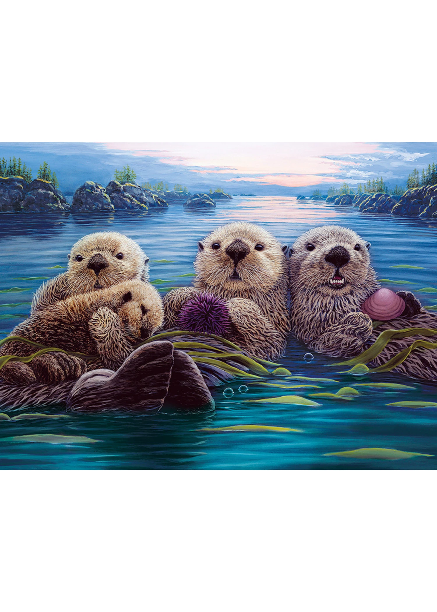The sea otters floating in their kelp forest are anxious to eat their Treasures of the Sea – delicious scallops and sea urchins. Cobble Hill’s Easy Handling 275 piece puzzles have extra large random cut pieces to make gripping the pieces easier and the reference poster will help you find your way through the adventure.