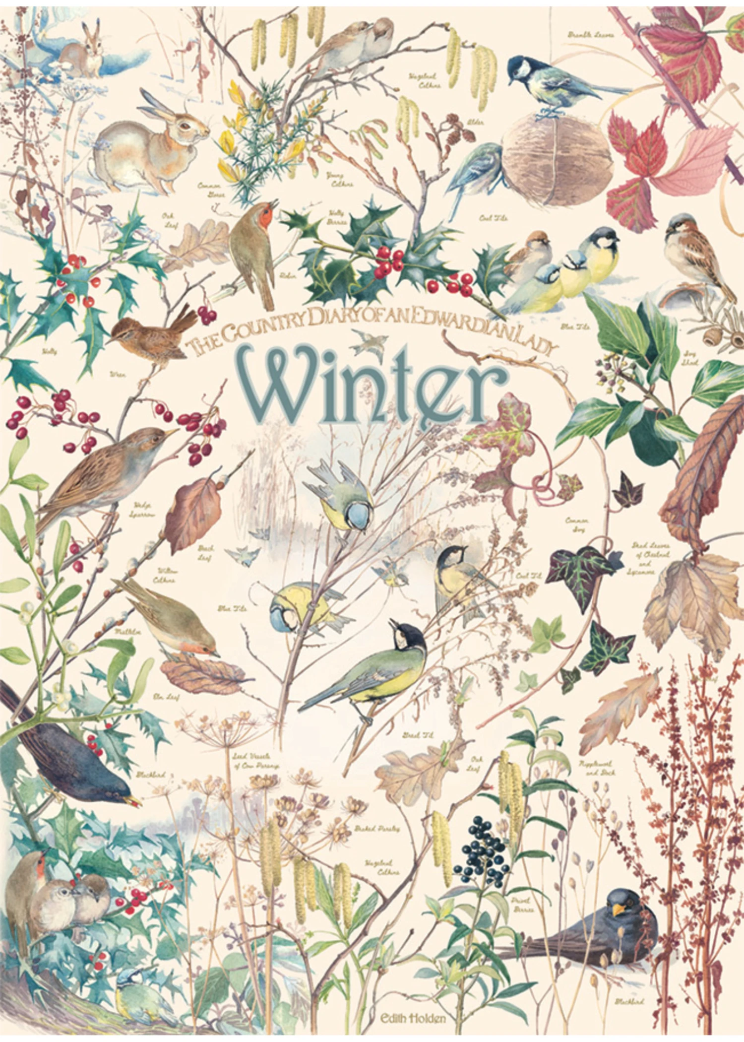 The soft blues and bright greens make this an attractive puzzle full of birds, bunnies, berries and all things delightful. Perfect for any season, this Country Diary: Winter 1000 piece puzzle will be especially enjoyed during the colder months. All images used are from the collection of Edith Holden’s ‘The Country Diary of an Edwardian Lady’.